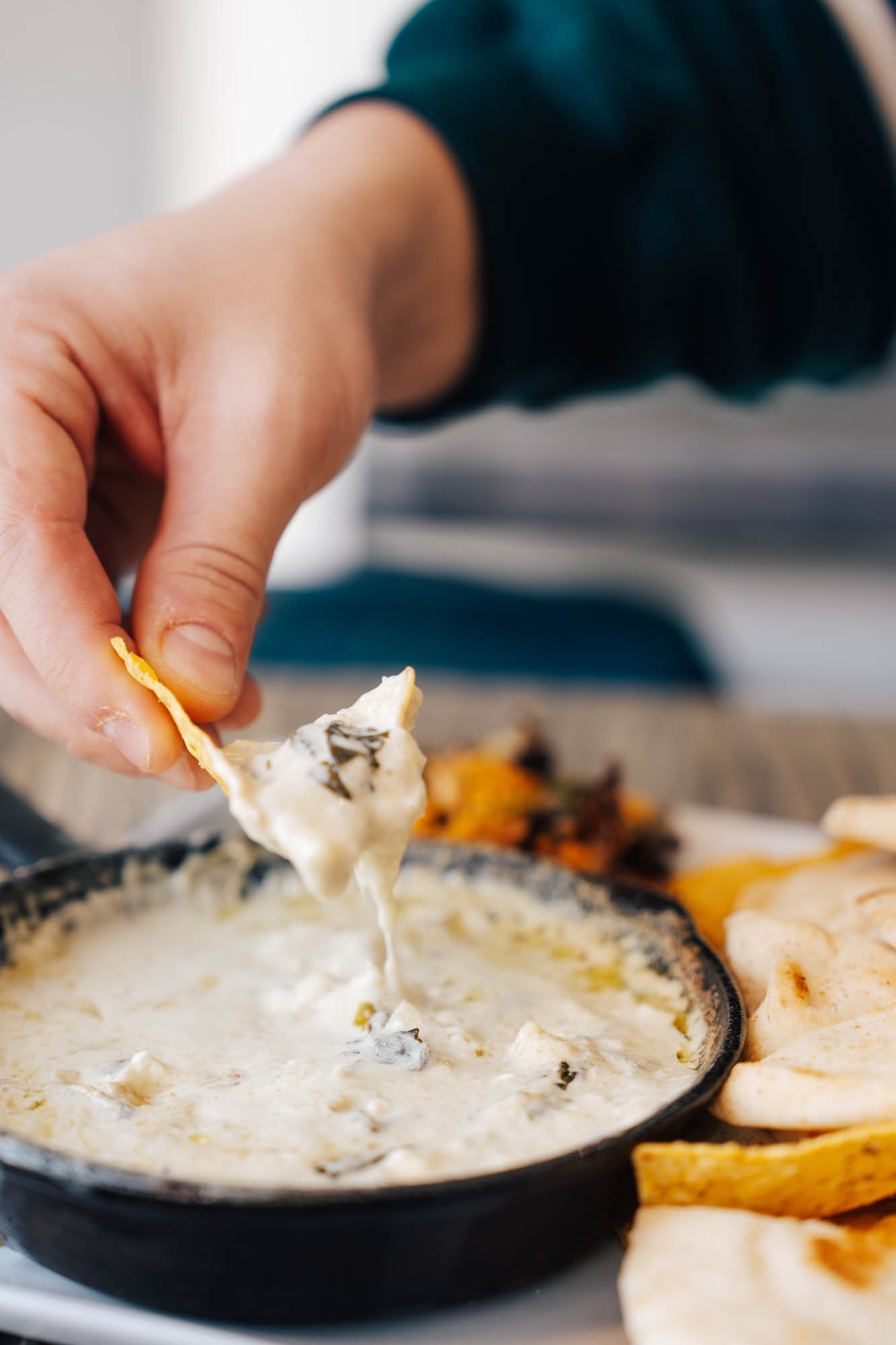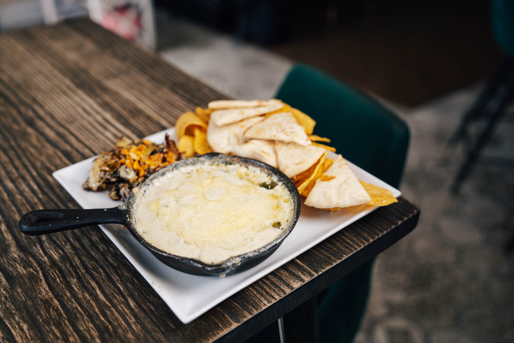 Artichoke, spinach & cheese dip, crispy Brussels, Caesar caper aioli, bread crumbs, pita, tortilla chips.