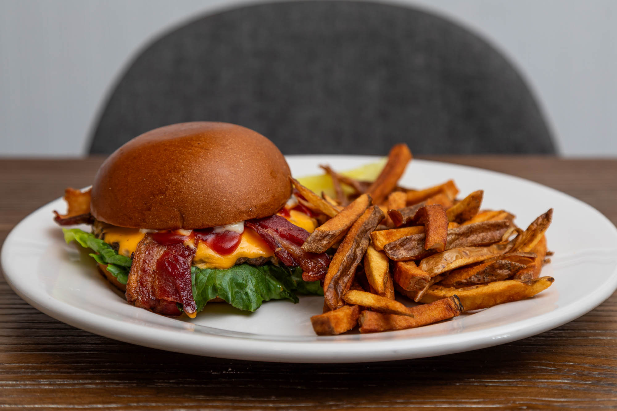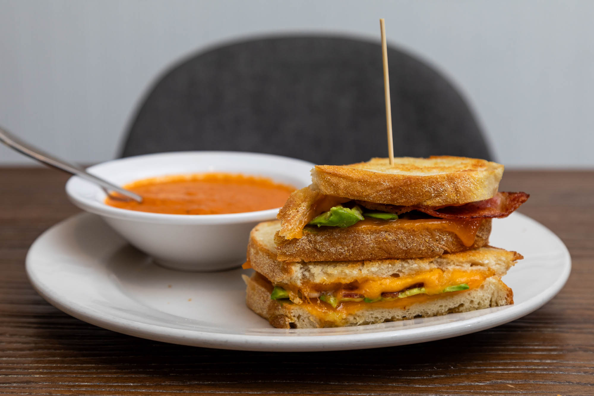 Your choice of Bacon or Sausage, served on an English Muffin or everything Bagel, with cheddar cheese, sriracha aioli, fried egg, served with side.